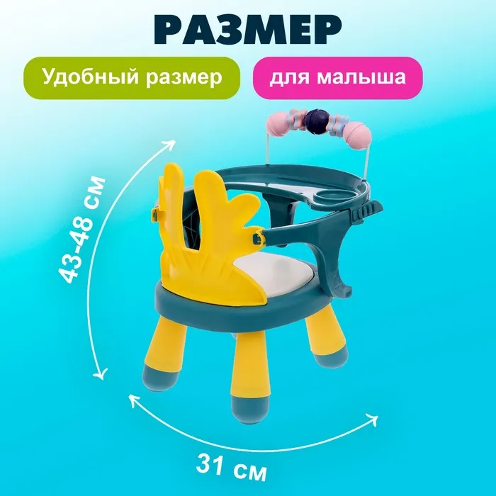 Развивающий стульчик 4 в 1 «Весёлый малыш» подходит для кормления, весёлых игр, а также для отдыха малыша. Яркие разноцветные игрушки способствуют развитию моторики, логического мышления и концентрации ребёнка.