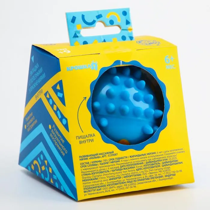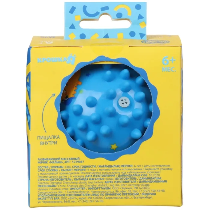 Развивающий тактильный мячик Крошка Я «Малыш», с пищалкой, ø9см, виды МИКС — Характеристики