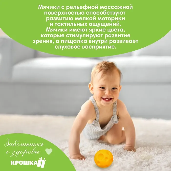 Развивающий тактильный мячик Крошка Я «Зайка», с пищалкой, 1 шт — Характеристики