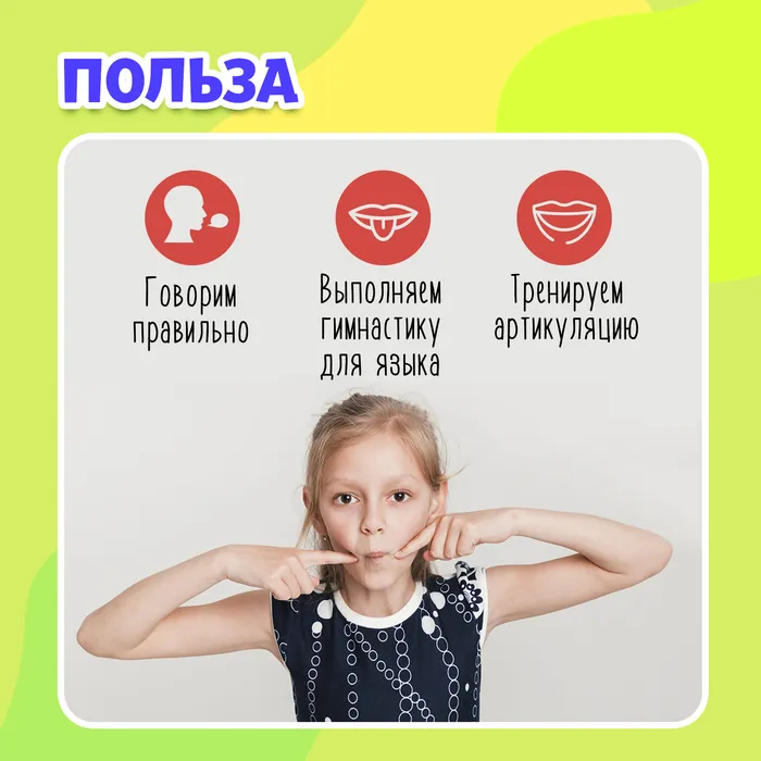 - Расположите тренажёр горизонтально перед ртом ребёнка. Малышу нужно вытянуть язык и с его помощью передвинуть бусинку из стороны в сторону.