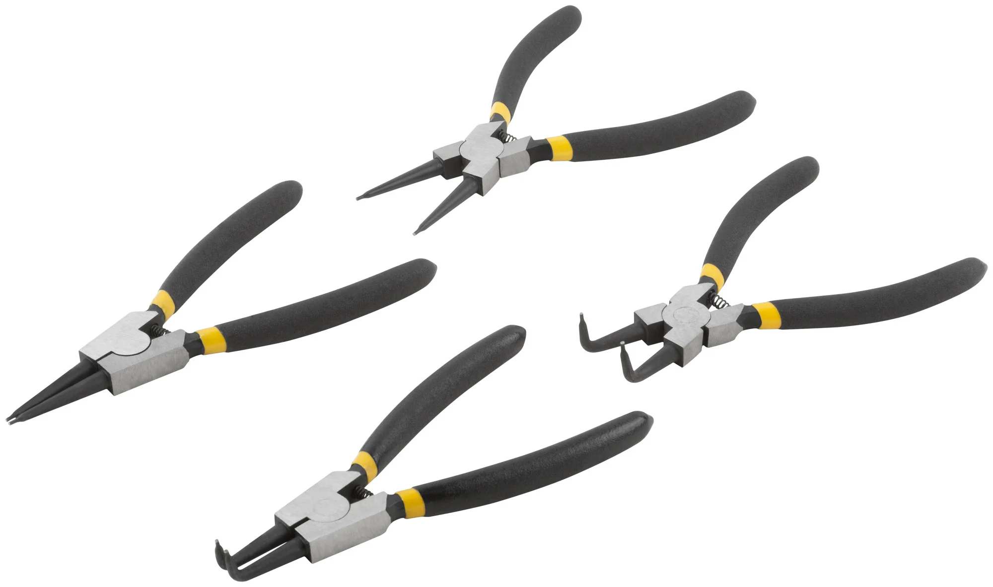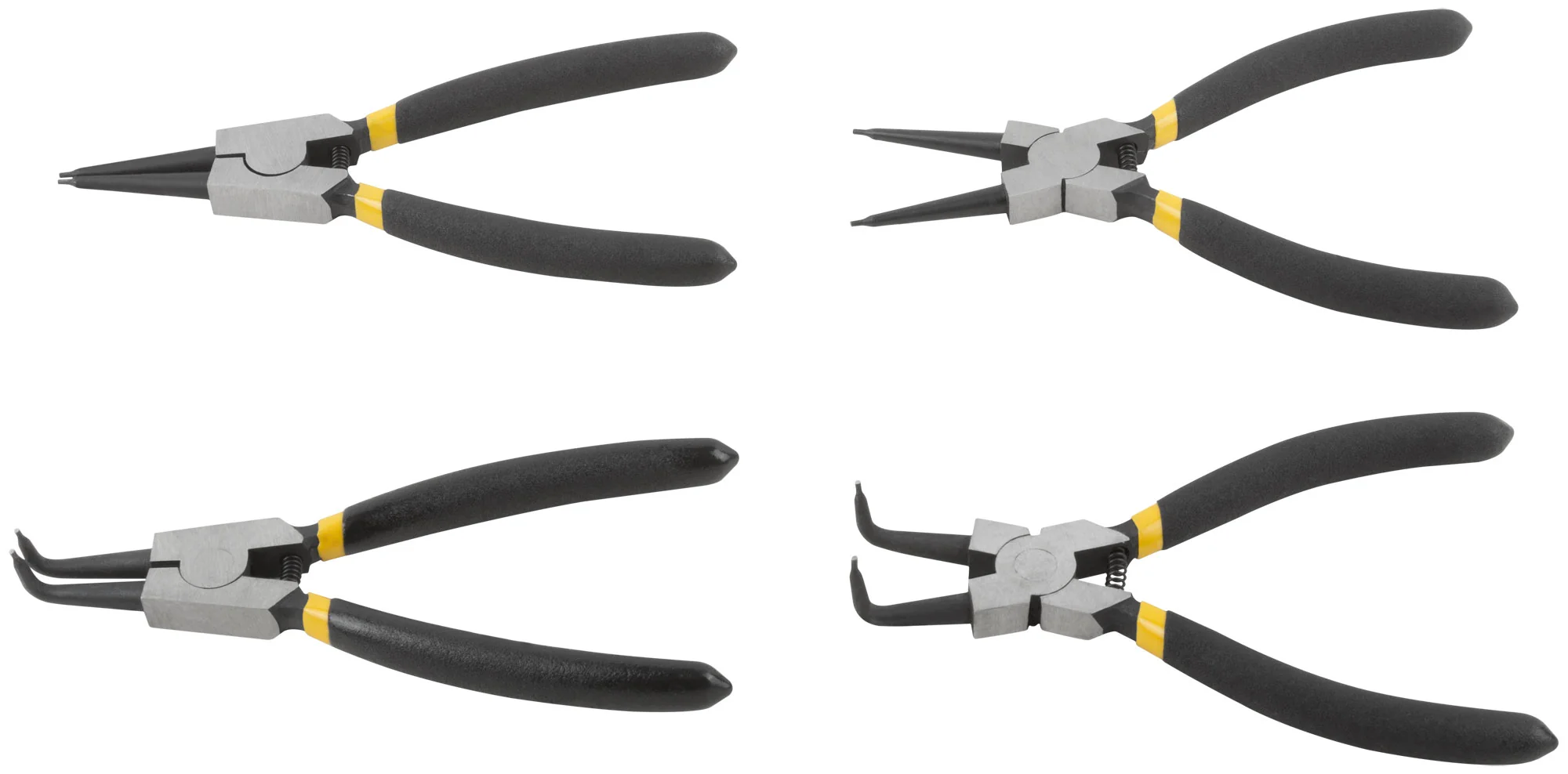 Основное преимущество этого набора — универсальность и удобство использования. Четыре инструмента различного типа позволяют выполнять широкий спектр задач, связанных с установкой и снятием стопорных колец различных размеров и форм.