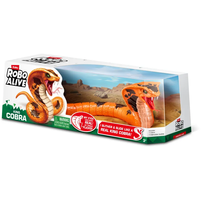 Освободите захватывающую 44,5 см длинную Robo Alive King Cobra, которая движется как настоящая благодаря интеллектуальной технологии обнаружения движения. Благодаря ультрареалистичной змейной коже эта королевская кобра выглядит как живая. Батарейки (2 x 1.5 V AAA/LR03) не входят в комплект. Рекомендуется для детей от 3 лет.