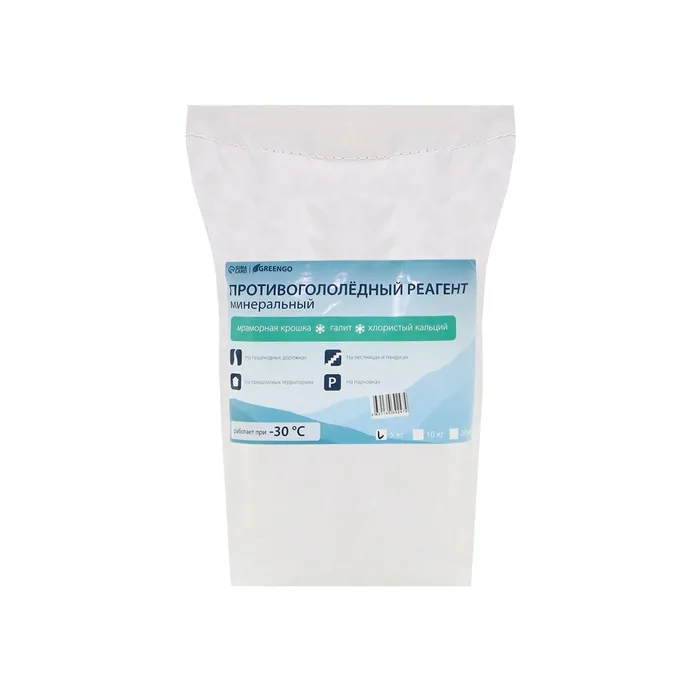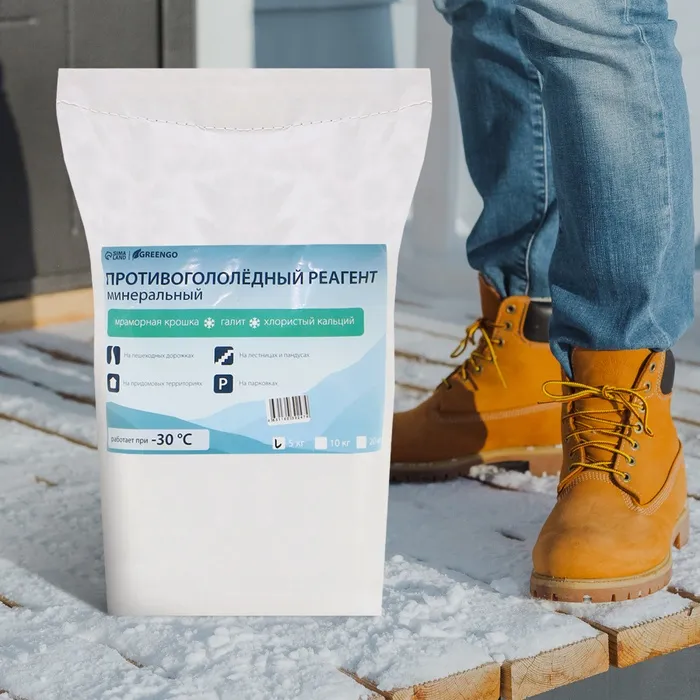 Реагент противогололёдный, мраморная крошка, галит, хлористый кальций, 5 кг, работает при – 30 °C, в мешке, Greengo — Характеристики