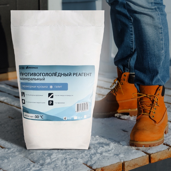 Реагент противогололёдный, мраморная крошка и реагент, 5 кг, работает при – 30 °C, в мешке, Greengo — Характеристики