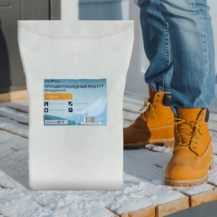 Реагент противогололёдный, пескосоль, 20 кг, работает при – 30 °C, в мешке, Greengo — Характеристики