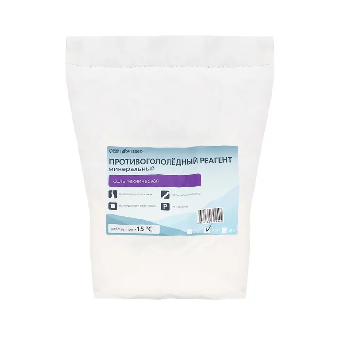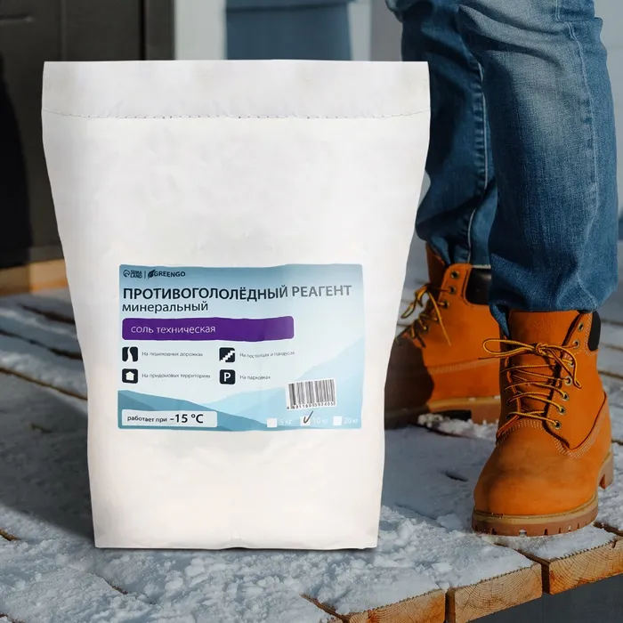 Реагент противогололёдный, соль техническая, 10 кг, работает при – 15 °C, в мешке, Greengo — Характеристики