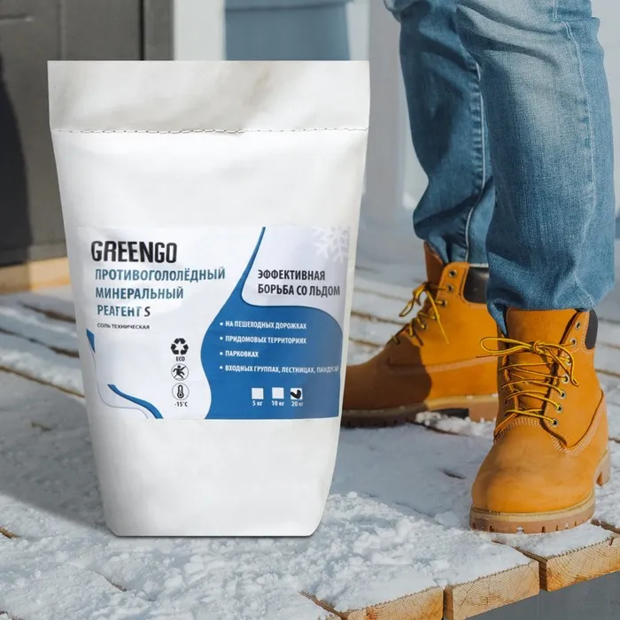 Реагент противогололёдный, соль техническая, 20 кг, работает при – 15 °C, в мешке, Greengo — Характеристики