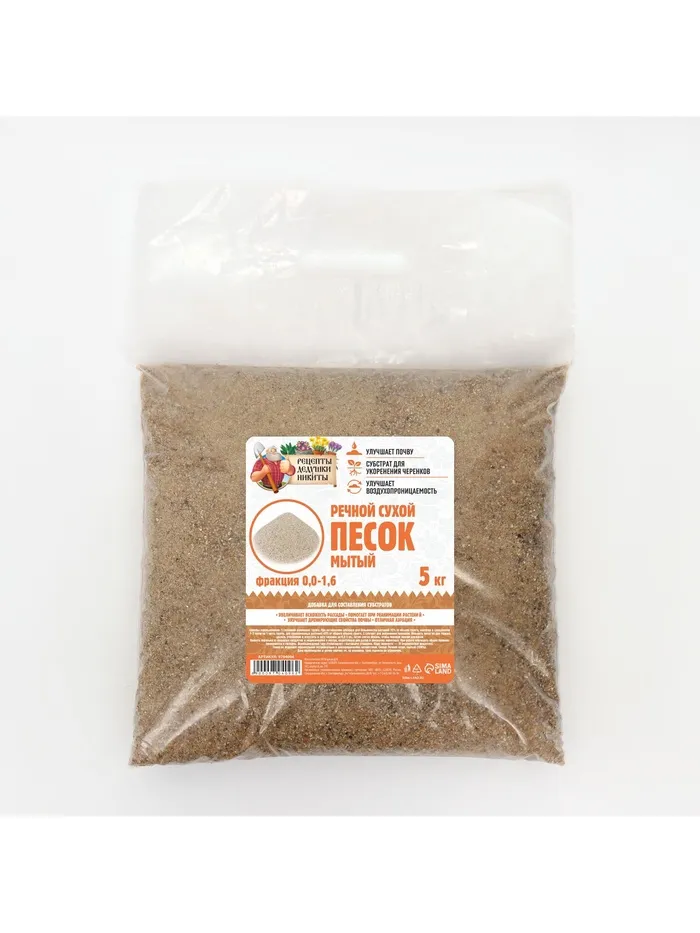 Речной песок «Рецепты дедушки Никиты», сухой, фр 0.0-1.6, 5 кг