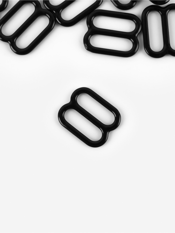 Этот черный металлический регулятор для бретелей шириной 10 мм — элемент для точной подгонки длины лямок. Он рассчитан на стандартные бретели нижнего белья, купальников и легкой одежды.
