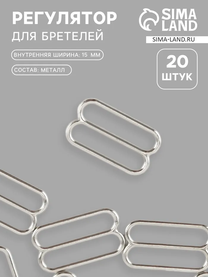 Регулятор для бретелей, металлический, 15 мм, 20 шт., цвет серебряный — Характеристики