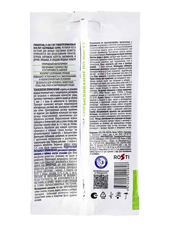 - Безопасный состав: Действующее вещество — природные гиббереллины. Не накапливается в плодах, не требует длительного периода ожидания до сбора урожая.