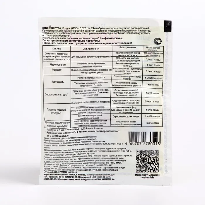 Регулятор роста, адаптоген ЭПИН-ЭКСТРА 1мл — Характеристики