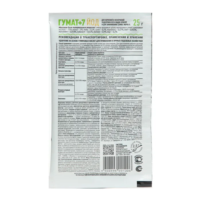 Регулятор роста Гумат + 7 йод, 25 г — Характеристики