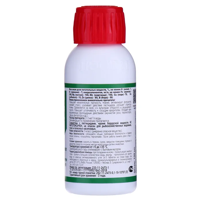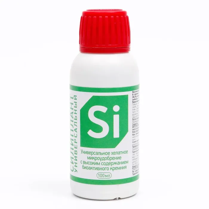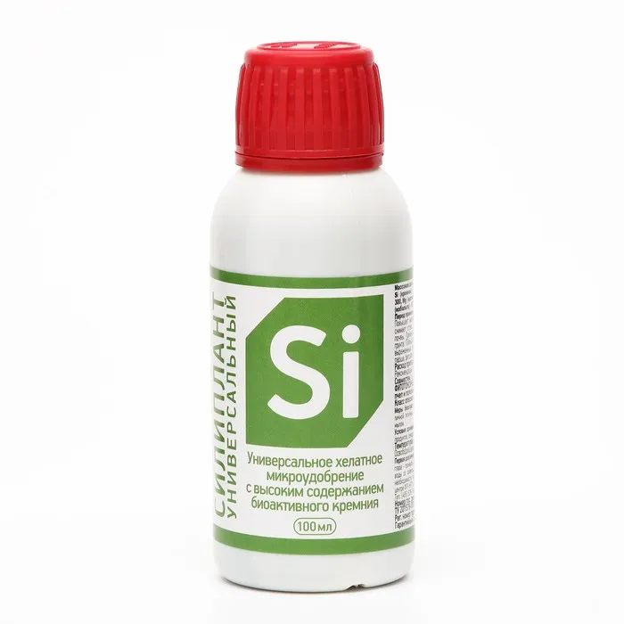 Регулятор роста Силиплант - универсальное удобрение с высоким содержанием биоактивного кремния (Si-7%) , калия (K-1%) и 7-ю микроэлементами в хелатной форме (мг/л): Fe – 300; Mg – 100; Cu – 70-240; Zn – 80; Mn – 150; Co – 15; B – 90. Повышает прочность растений, устойчивость к болезням, вредителям, засухе. Улучшает плодородие почвы.