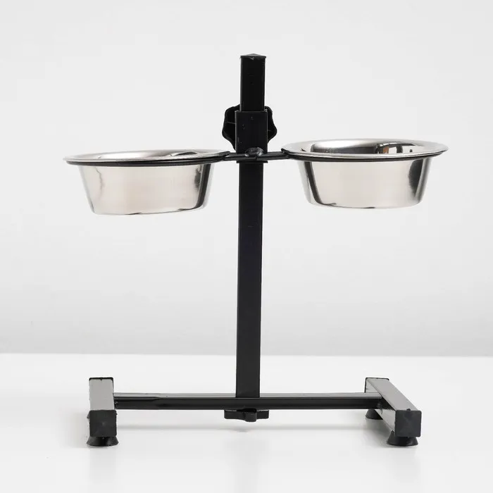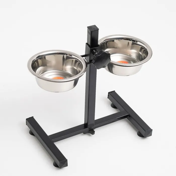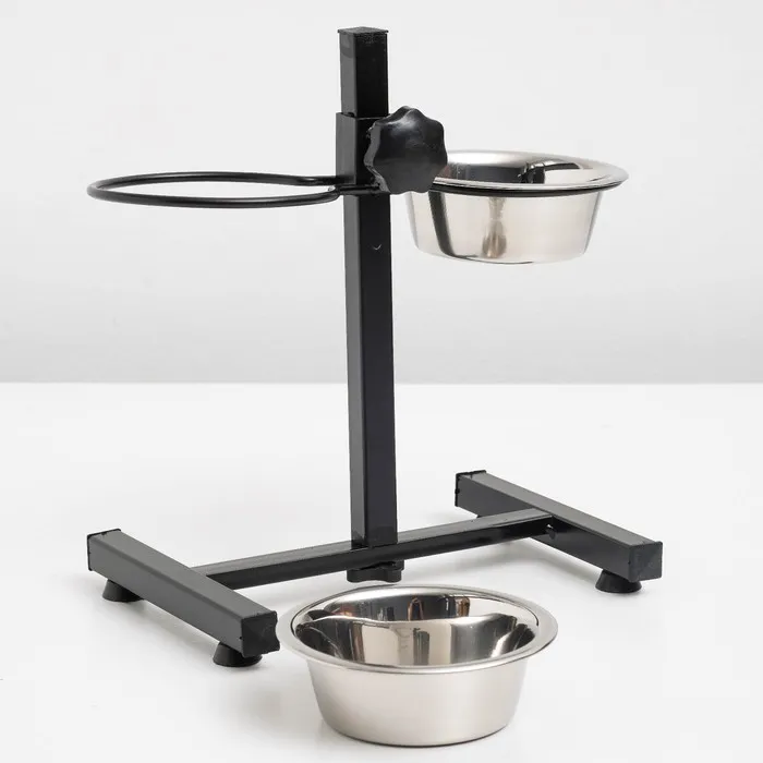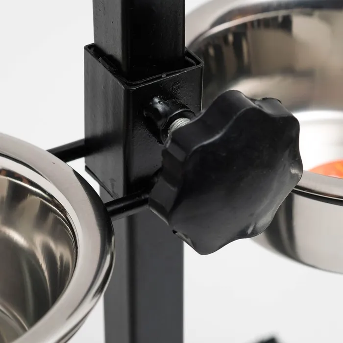 Стойка с 2-мя мисками для кормления сразу нескольких животных, это – идеальное решение для кормления щенков и собак подростков, живущих на одной территории. Качественные, практичные и функциональные миски для собак размещены на регулируемой подставке, которая будет "расти" вместе с вашими малышами. Винтовая кормушка убережёт помещение от загрязнения кормом и водой. Металлическая конструкция очень устойчивая, поэтому ее очень сложно сдвинуть или опрокинуть даже самым активным щенкам. Стойка и миски хорошо переносят обработку горячей водой, моющими и дезинфицирующими средствами.