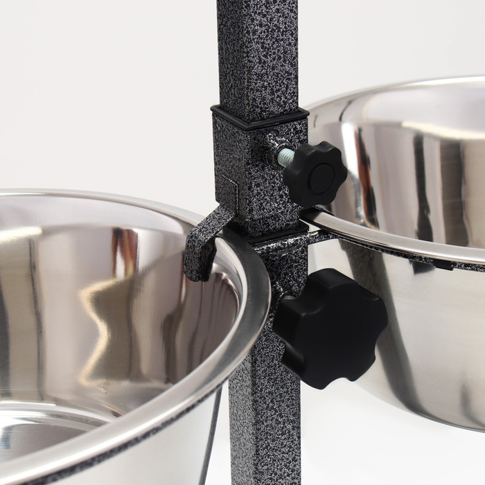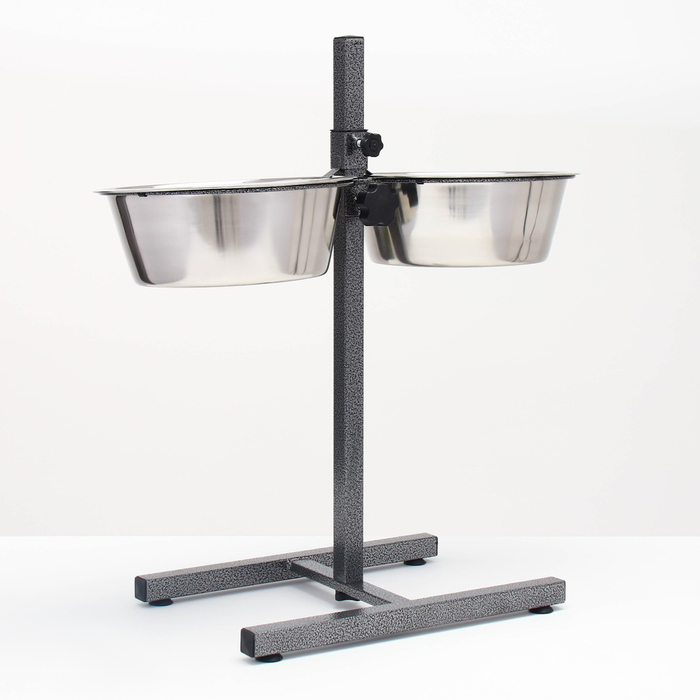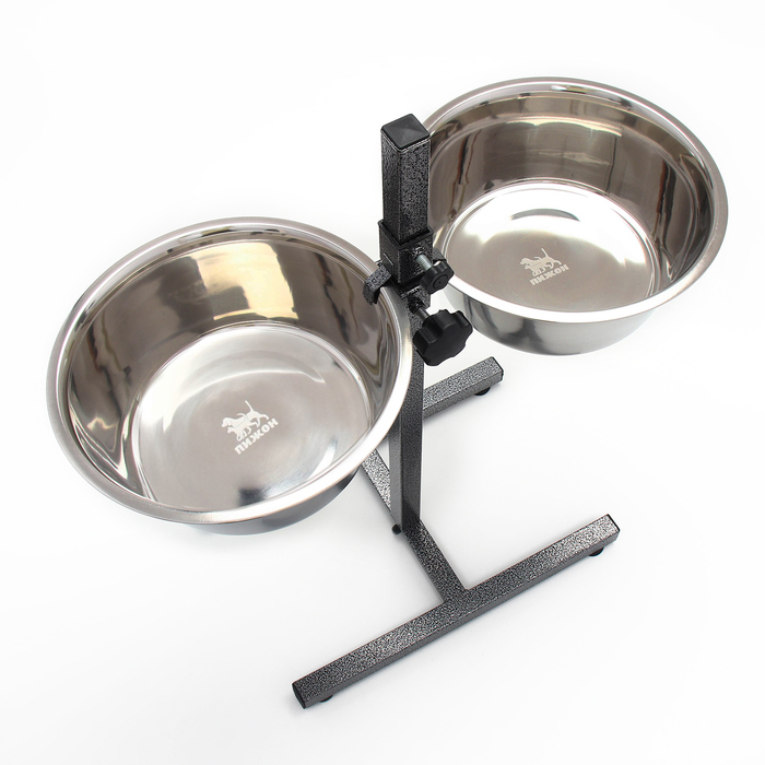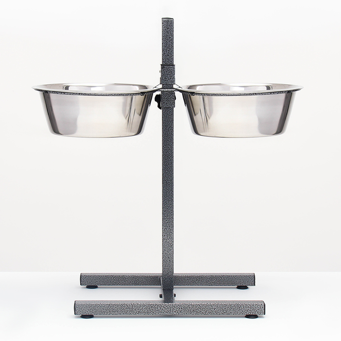 Стойка с 2-мя мисками для кормления сразу нескольких животных, это – идеальное решение для кормления щенков и собак подростков, живущих на одной территории. Качественные, практичные и функциональные миски для собак размещены на регулируемой подставке, которая будет "расти" вместе с вашими малышами. Винтовая кормушка убережёт помещение от загрязнения кормом и водой. Металлическая конструкция очень устойчивая, поэтому ее очень сложно сдвинуть или опрокинуть даже самым активным щенкам. Стойка и миски хорошо переносят обработку горячей водой, моющими и дезинфицирующими средствами.