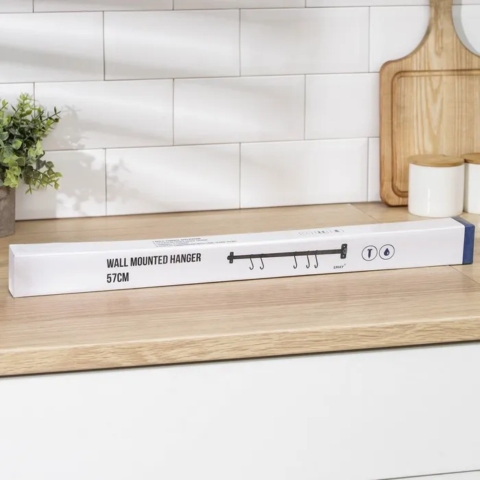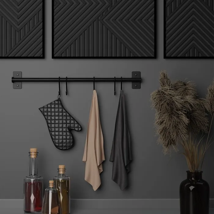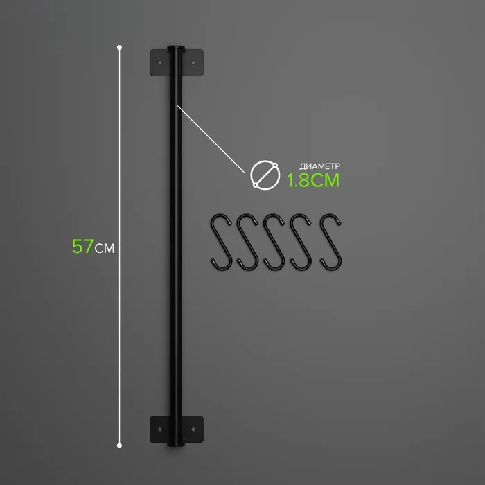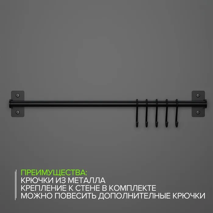 Рейлинговая система для кухни, 57 см, 5 крючков, чёрная — Характеристики