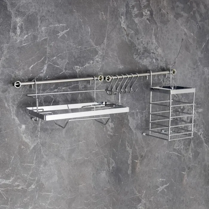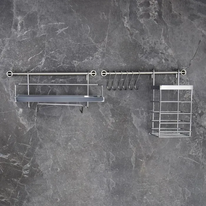 Рейлинговая система для кухни Доляна, базовый набор, 10 предметов, хромированная — Характеристики