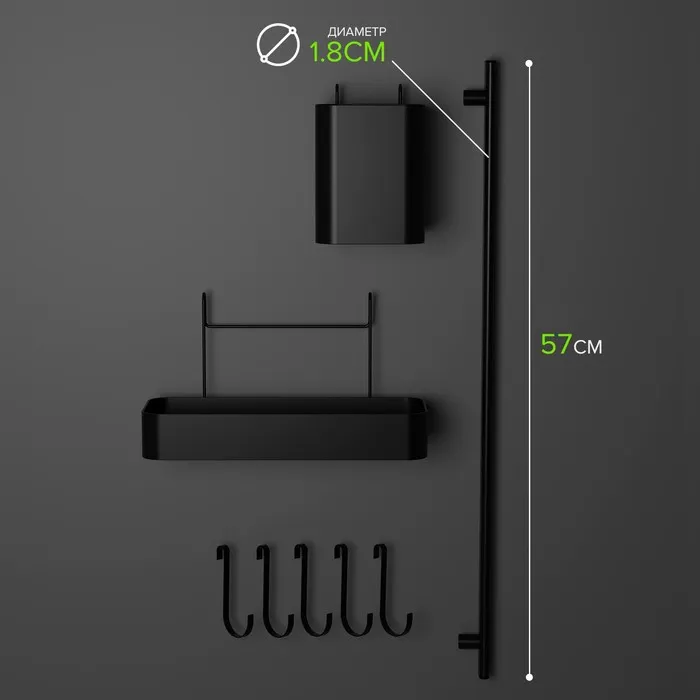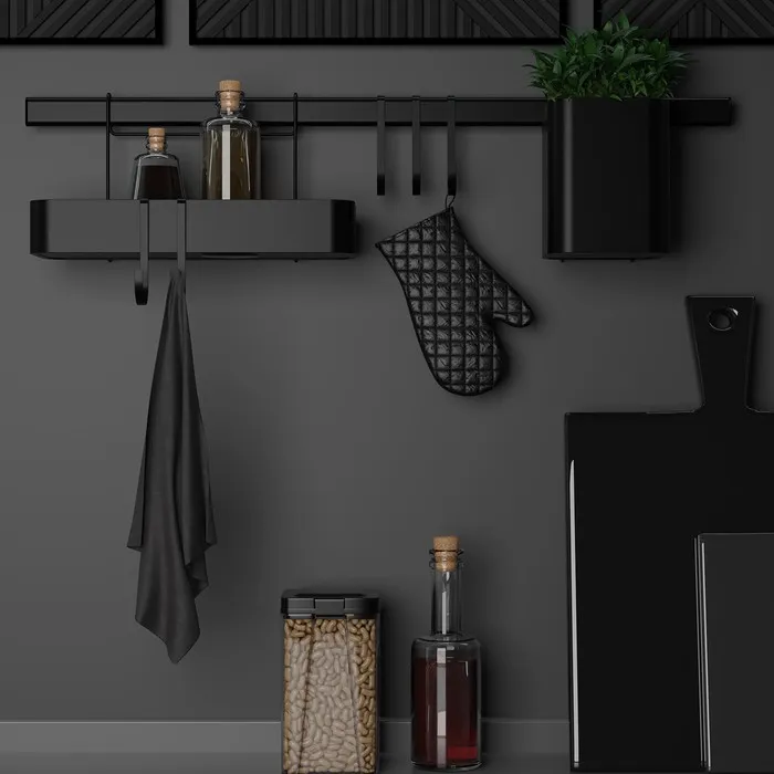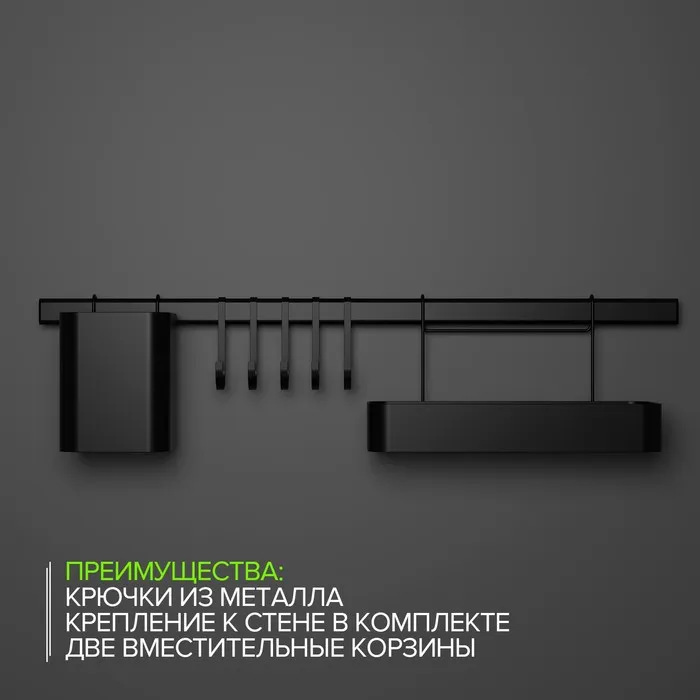Рейлинговая система для кухни на 8 предметов Доляна, 60.5 см, чёрная — Характеристики