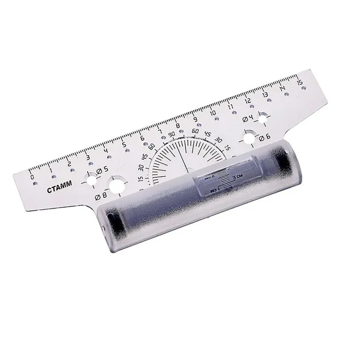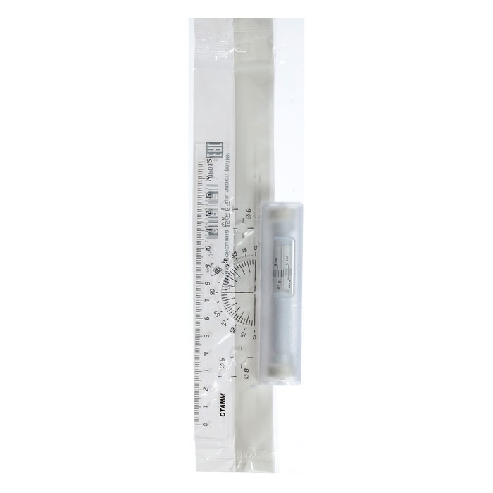 Набор геометрический, чертежный, блистер: линейка 30 см, 2 треугольника, транспортир, ластик, циркуль, линейка с трафаретами, тонированный, МИКС