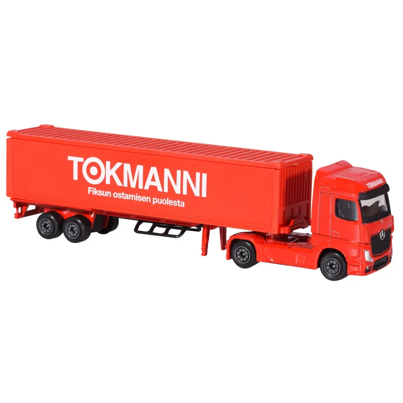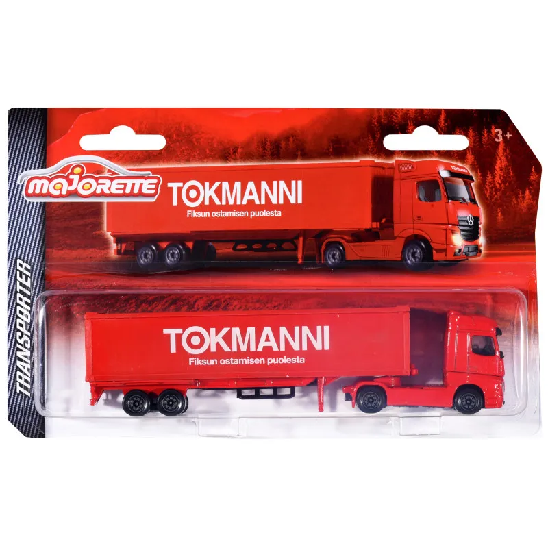 Отправляйтесь за покупками на настоящем грузовике Tokmanni! Этот грузовик Majorette, украшенный логотипами Tokmanni, имеет прочный металлический каркас и длину 20 см. Он оснащен съемной кабиной и свободно вращающимися колесами.