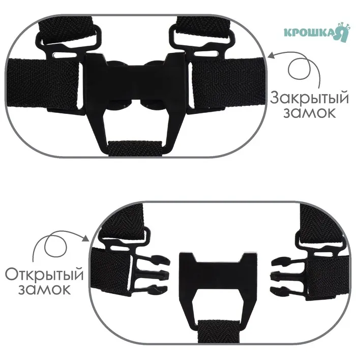 Ремень безопасности пятиточечный, универсальный в коляску/стульчик для кормления/автокресло детское, чёрный — Характеристики