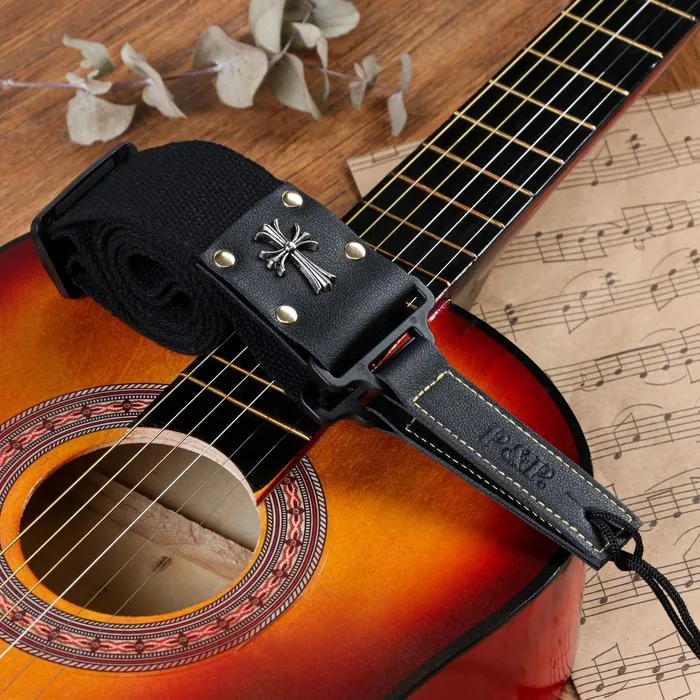 Ремень для гитары Music Life Крест, черный, 95-155 см