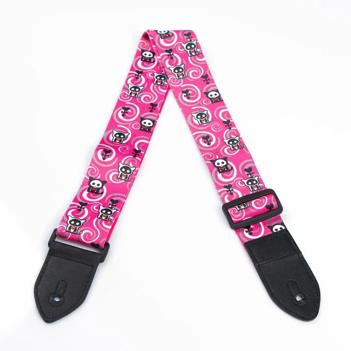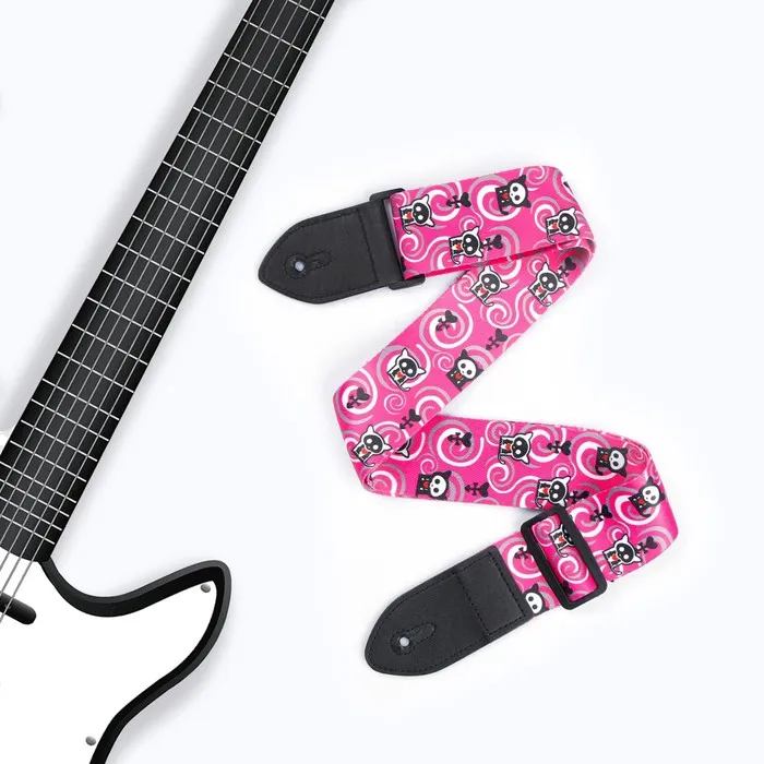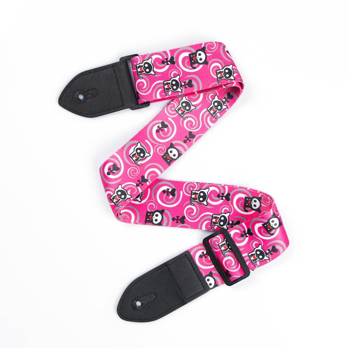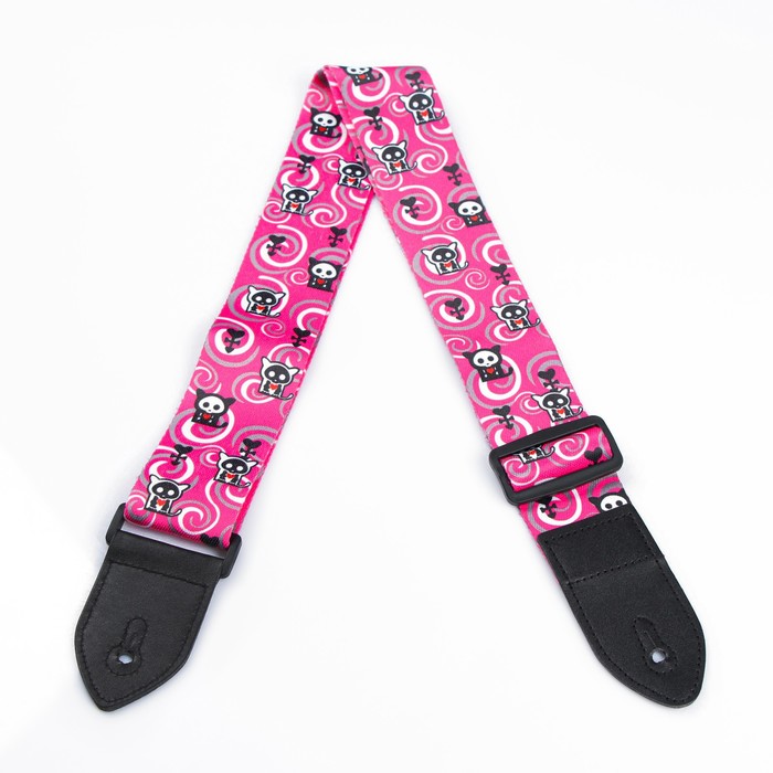 Ремень для гитары, розовый, кошечки, длина 60-117 см, ширина 5 см — Характеристики