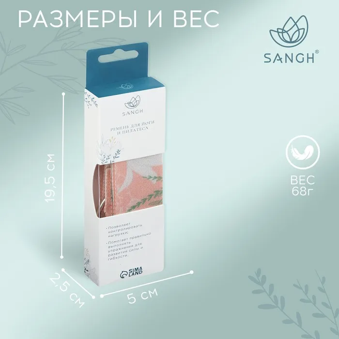 Ремень для йоги Sangh Flowers, 180х4 см, цвет бежевый — Характеристики