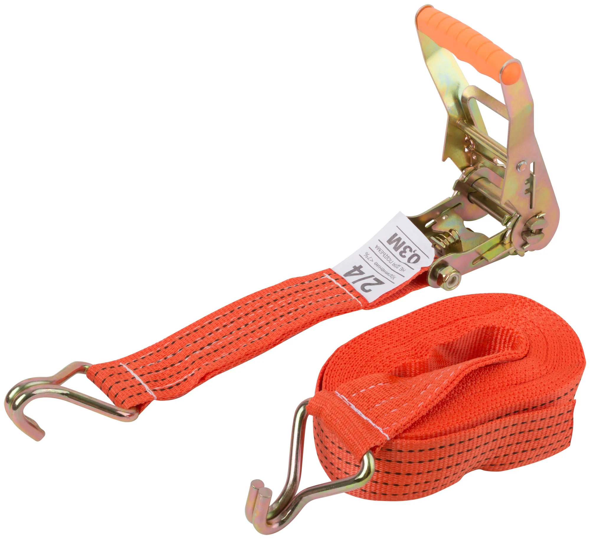 Изготовленный из высококачественного полиэфира и стали, ремень выдерживает разрывную нагрузку до 2000 кг и максимальную нагрузку до 4000 кг. Стальная конструкция храпового механизма гарантирует долговечность и устойчивость к износу.