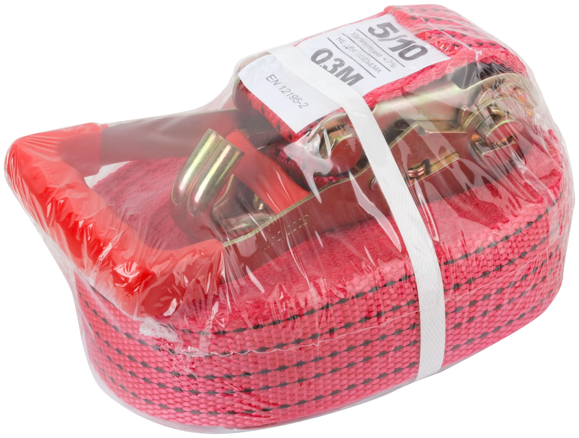 Ремень изготовлен из прочного полиэфира, а замок с храповым механизмом выполнен из стали, что обеспечивает долговечность и надежность. С разрывной нагрузкой 5000 кг и максимальной нагрузкой до 10000 кг, он справится с любыми задачами по транспортировке.
