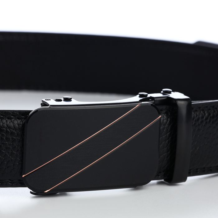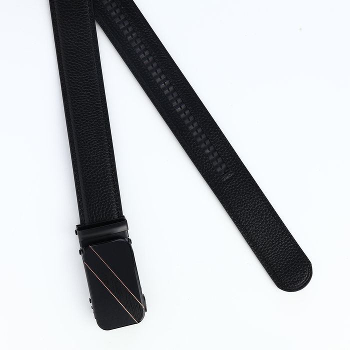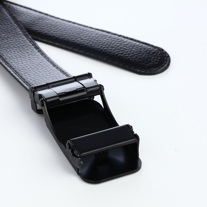 Ремень мужской, 120×3.5 см, кожа под флотер, пряжка автомат, прошив, чёрный — Характеристики