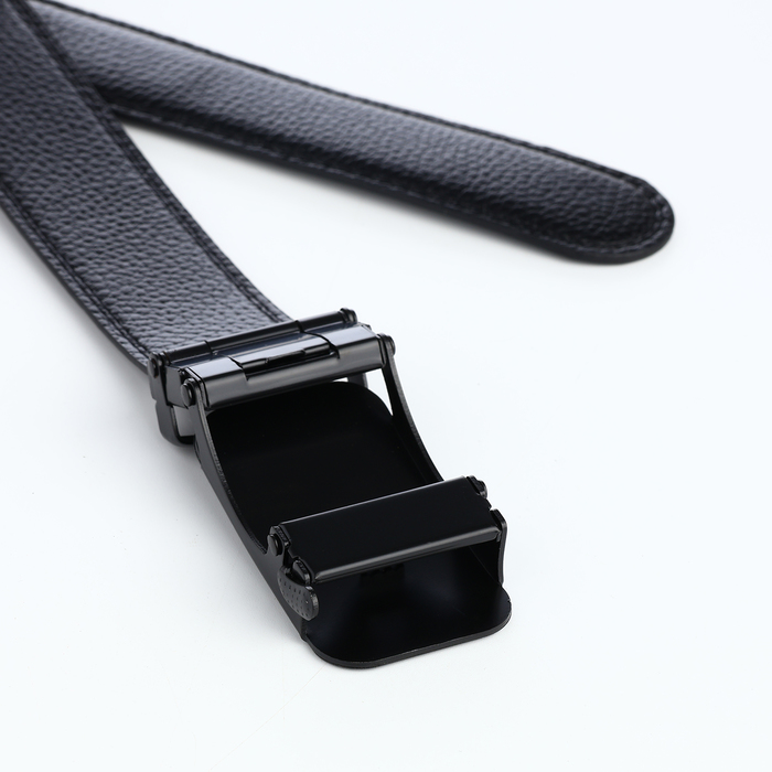 Ремень мужской, 120×3.5 см, пряжка автомат, кожа под флотер, чёрный — Характеристики