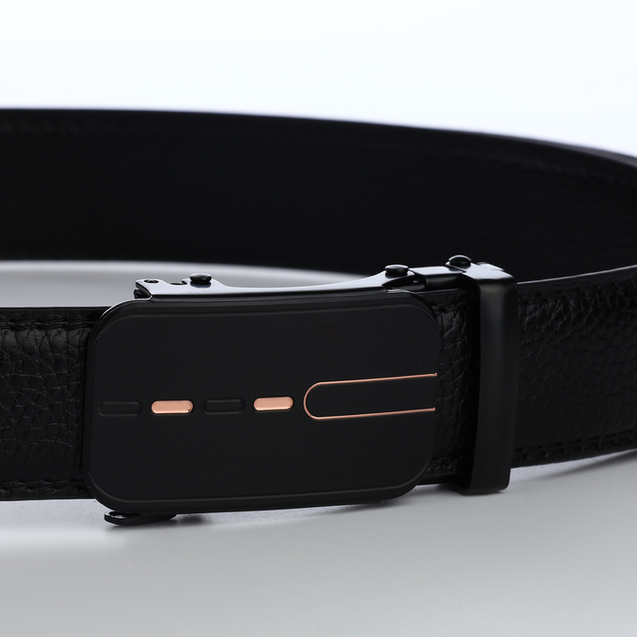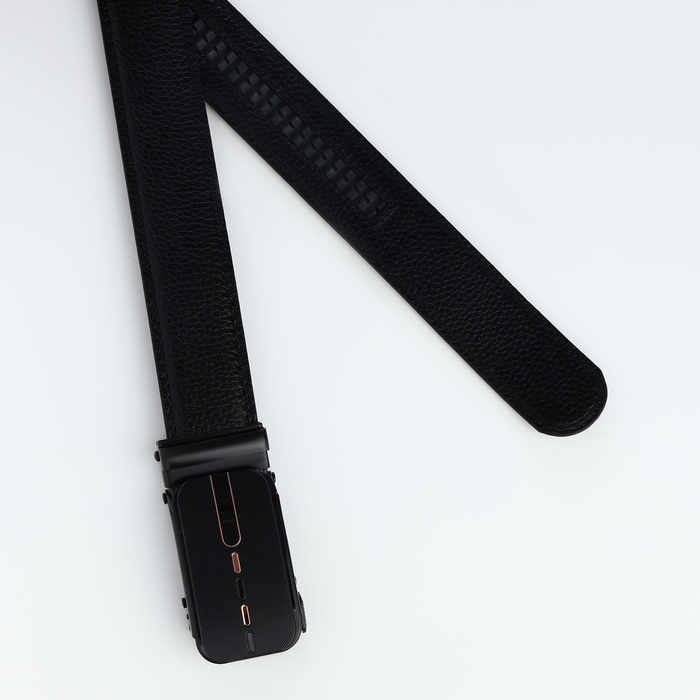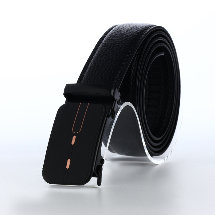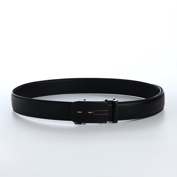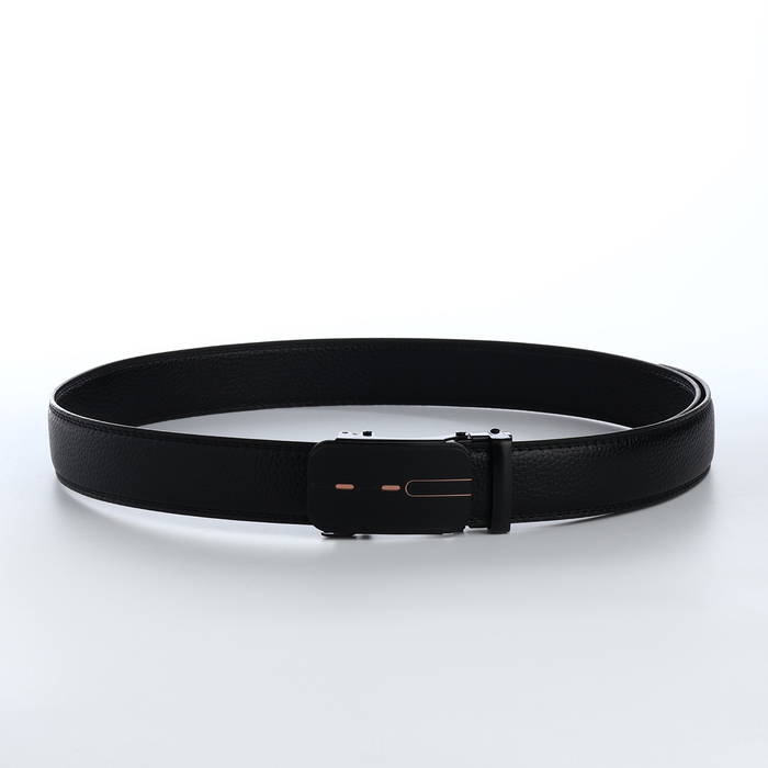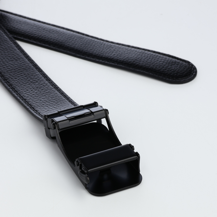 Ремень мужской, 120×3.5 см, пряжка автомат, регулируемая длина, кожа под флотер, чёрный — Характеристики