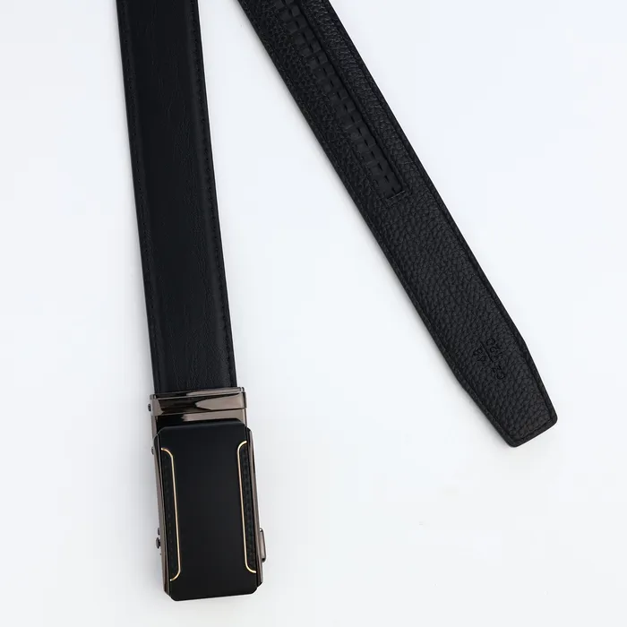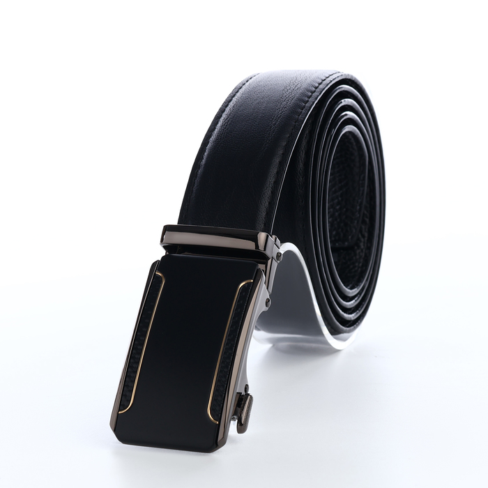 Ремень мужской, натуральная кожа, 120×3.6 см, пряжка автомат, чёрный — Характеристики