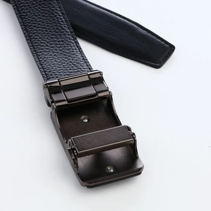 Этот мужской ремень с автоматической пряжкой создаёт точную посадку за секунду. Цельность чёрного цвета и скрытый механизм делают его универсальным решением для делового гардероба и повседневной носки.