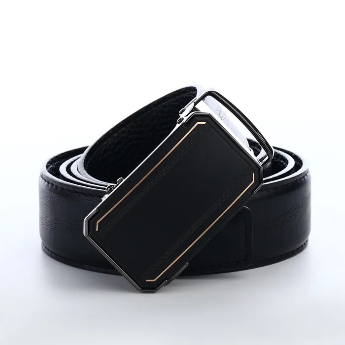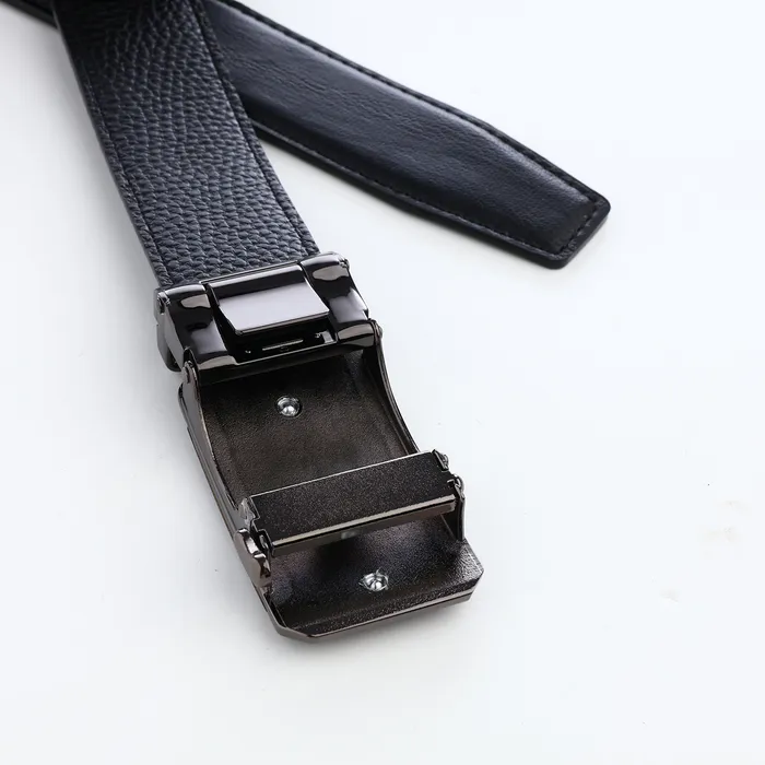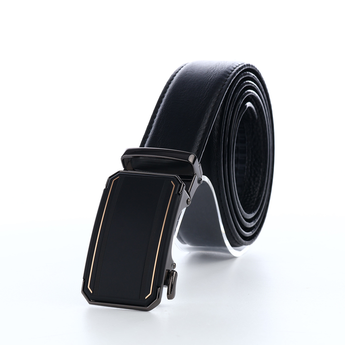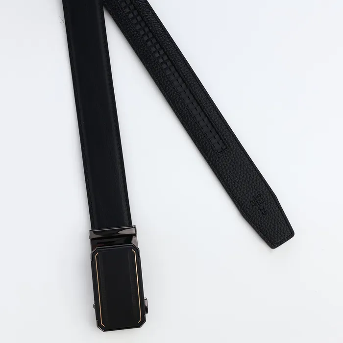 Мужской ремень с автоматической пряжкой для точной регулировки. Система фиксации без отверстий сохраняет материал от деформации. Чёрный цвет и скрытая фурнитура создают лаконичный аксессуар для офиса и повседневной носки.