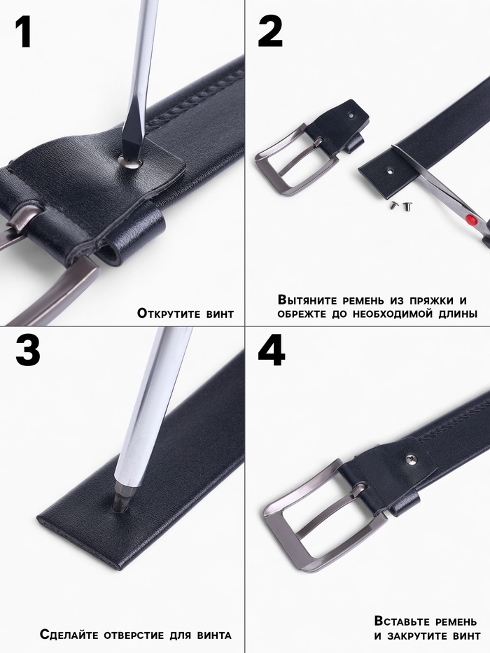 Ремень мужской, ширина 3.5 см, винт, один прокол, пряжка металл, чёрный — Характеристики