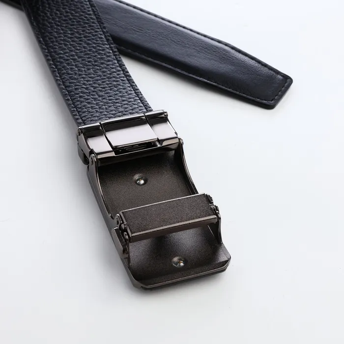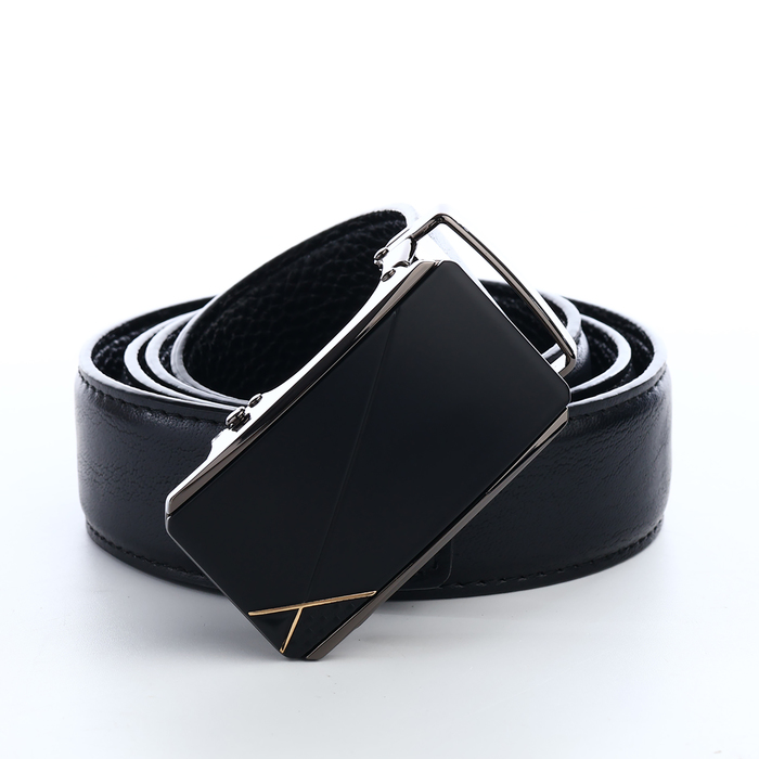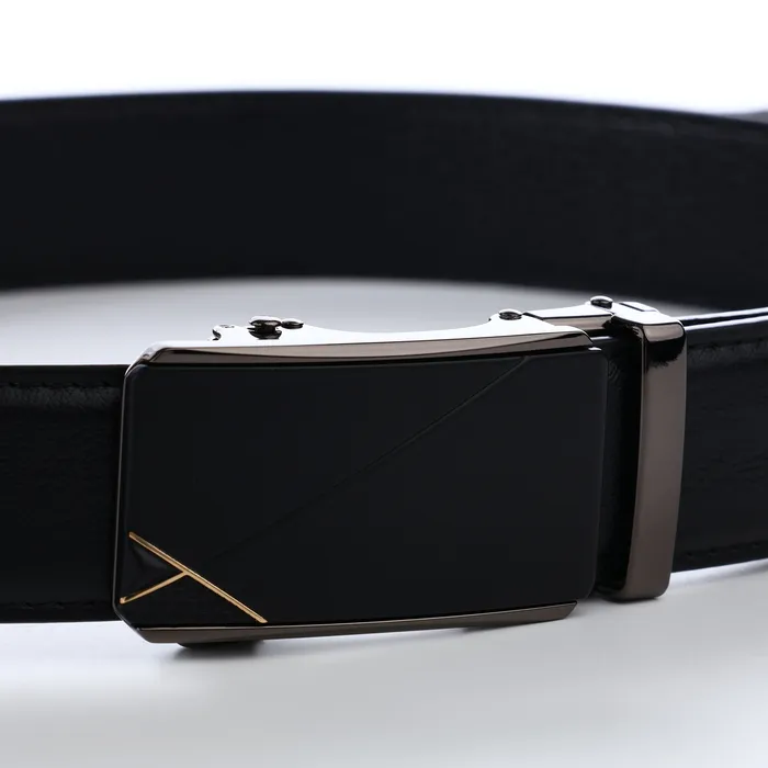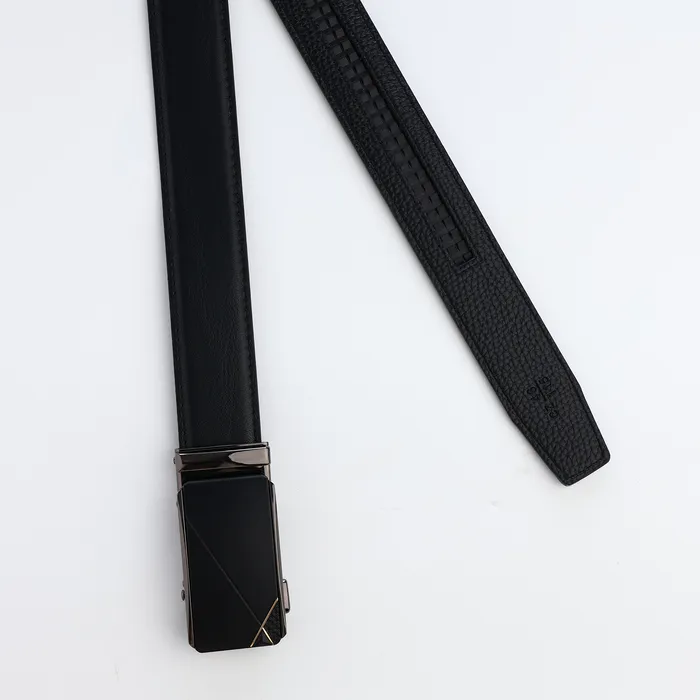 Мужской ремень с автоматической пряжкой сочетает практичность и современный дизайн. Механизм автомат обеспечивает точную подгонку без отверстий, сохраняя целостность материала. Чёрный цвет и лаконичная фурнитура подходят для офиса и повседневной носки.