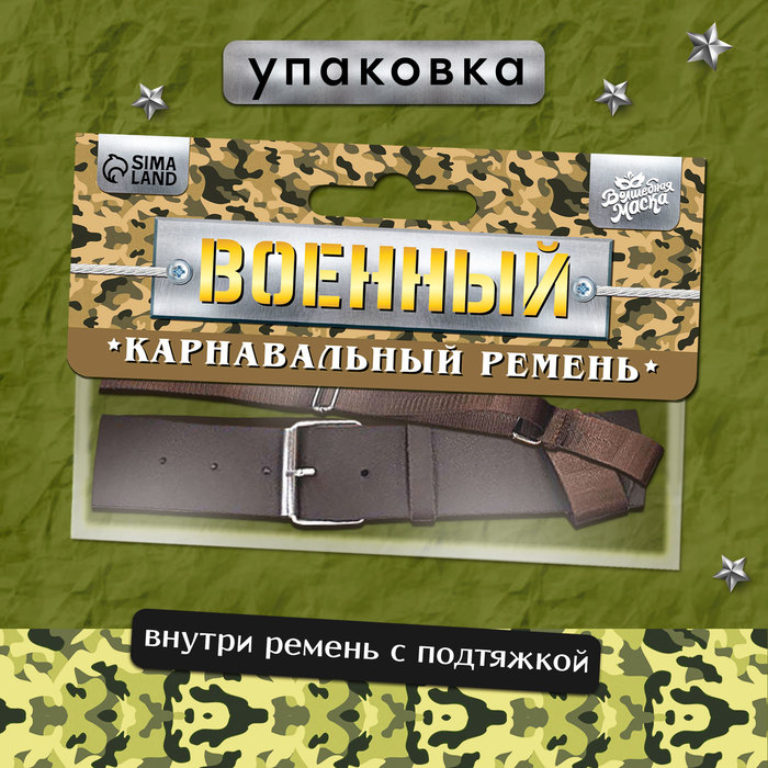 Карнавальный ремень «Военный» — стильный и функциональный аксессуар, который поможет создать яркий образ для любой тематической вечеринки.