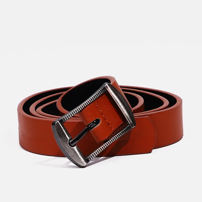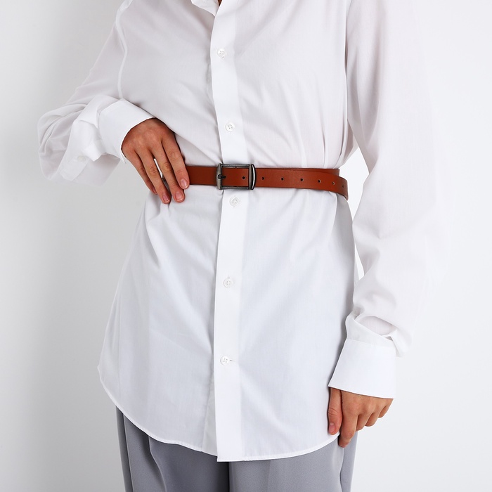 Ремень женский, 100×2.4 см, классическая пряжка тёмный металл, рыжий — Характеристики