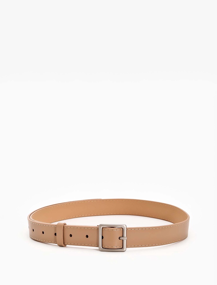 Этот ремень объединяет светлые и темные вещи в гармоничный комплект. Он сочетается с джинсами, брюками и платьями, добавляя образу завершенность. Матовая пряжка создает сдержанный акцент, который гармонирует с серебряными украшениями, а одно отверстие регулировки помогает найти удобное положение.