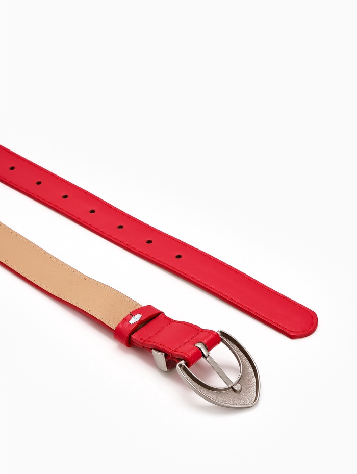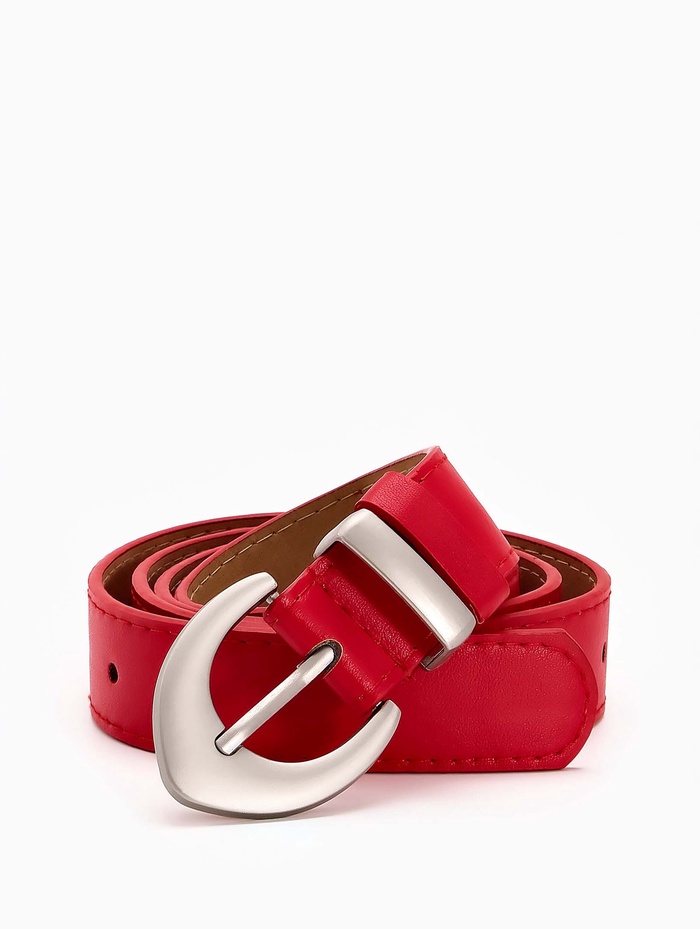 Красный ремень с матовой серебряной пряжкой создает смелый акцент в вашем гардеробе. Насыщенный цвет привлекает внимание, а лаконичный дизайн сохраняет универсальность. Ширина 3 см мягко подчеркивает талию, сохраняя удобство при ношении.