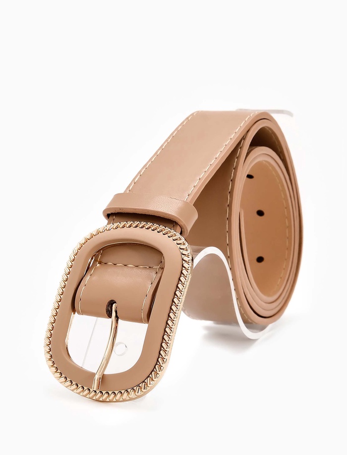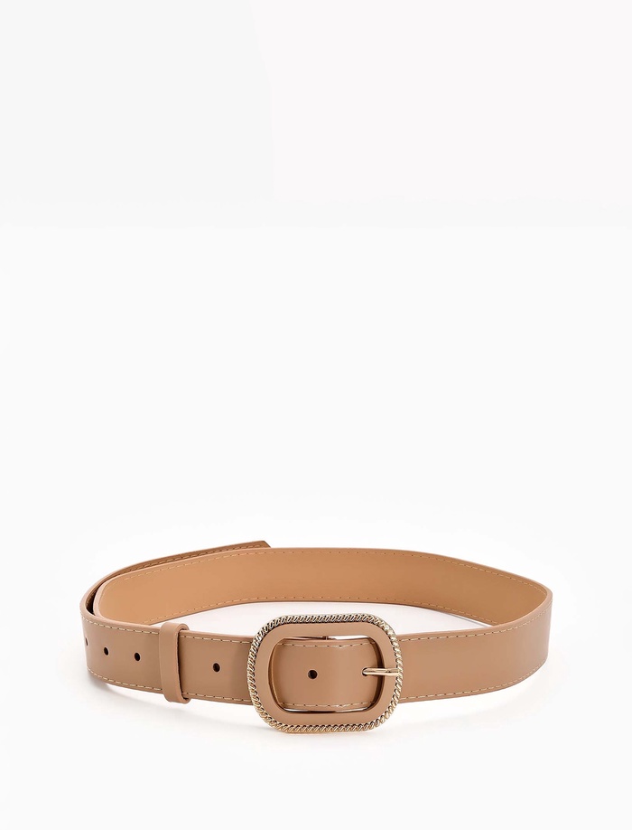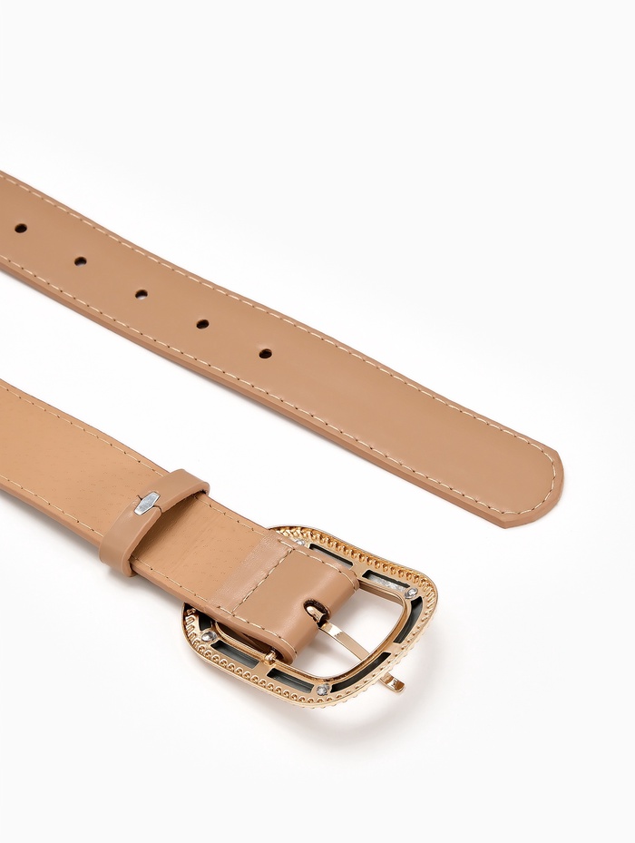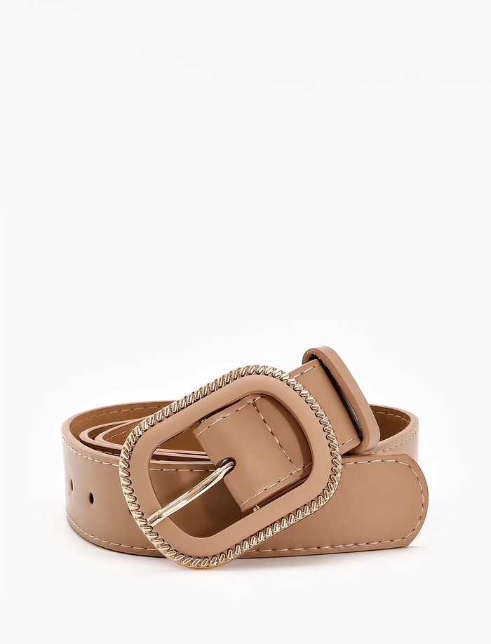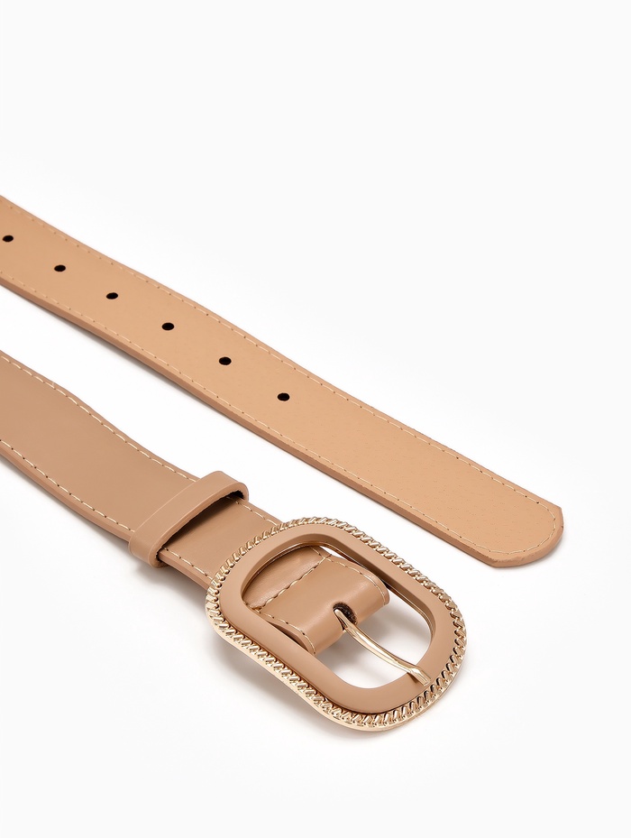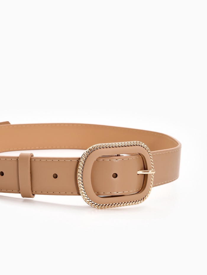 Бежевый женский ремень с комбинированной пряжкой легко становится частью вашего повседневного гардероба. Нейтральный цвет сочетается с разными оттенками одежды, а золотой акцент на пряжке добавляет теплый оттенок. Ширина 3 см мягко определяет линию талии, сохраняя комфорт в течение дня.
