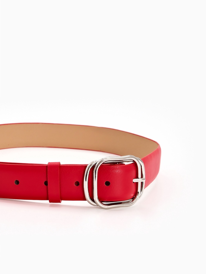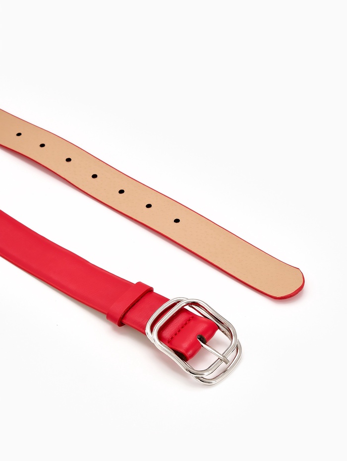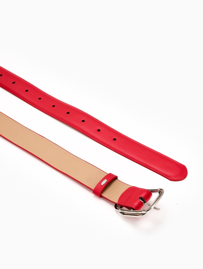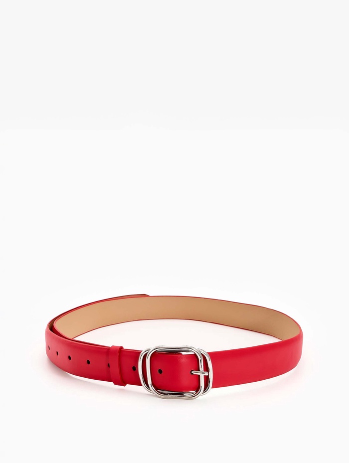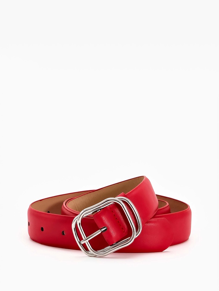 Яркий красный ремень с серебряной пряжкой станет смелым акцентом в вашем гардеробе. Модель 3,2 см мягко охватывает талию, создавая выразительный силуэт. Холодный оттенок фурнитуры подчеркивает насыщенность цвета, создавая современное сочетание.