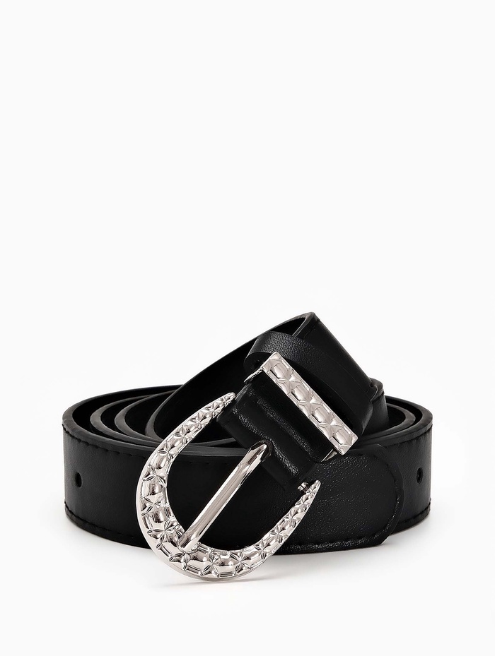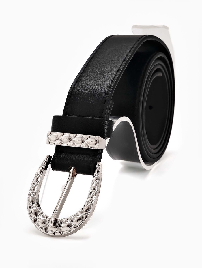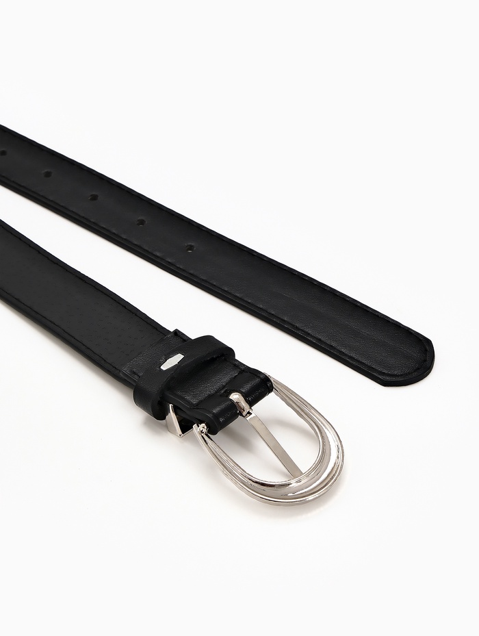Этот женский ремень черного цвета с серебряной пряжкой станет универсальным дополнением вашего гардероба. Классическое сочетание оттенков подходит для разных стилей, а ширина 3 см мягко подчеркивает линию талии. Серебряная фурнитура добавляет лаконичный акцент, который сочетается с украшениями в холодной гамме.
