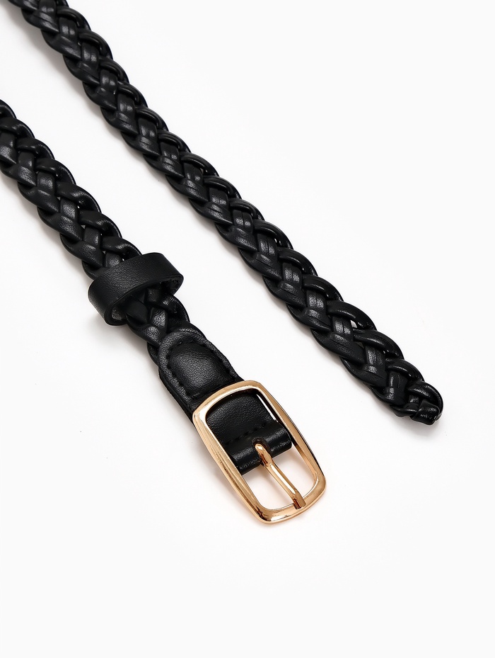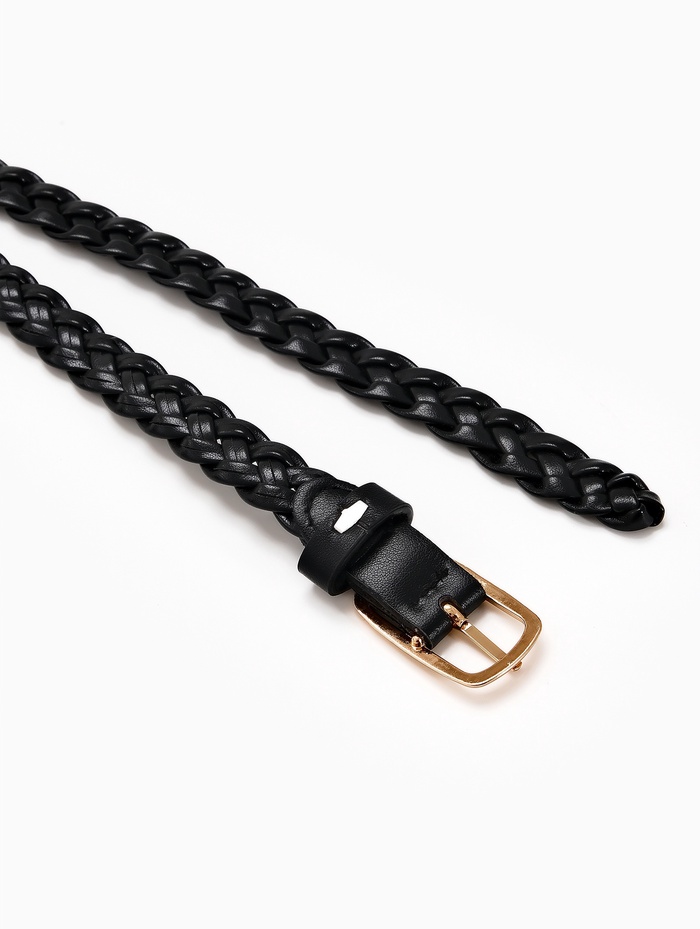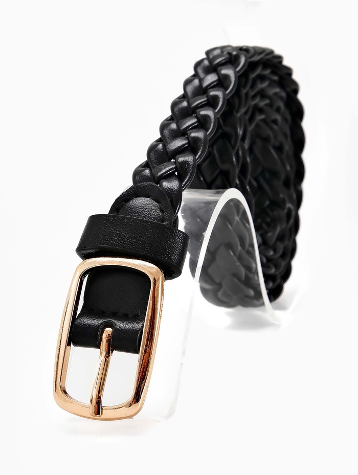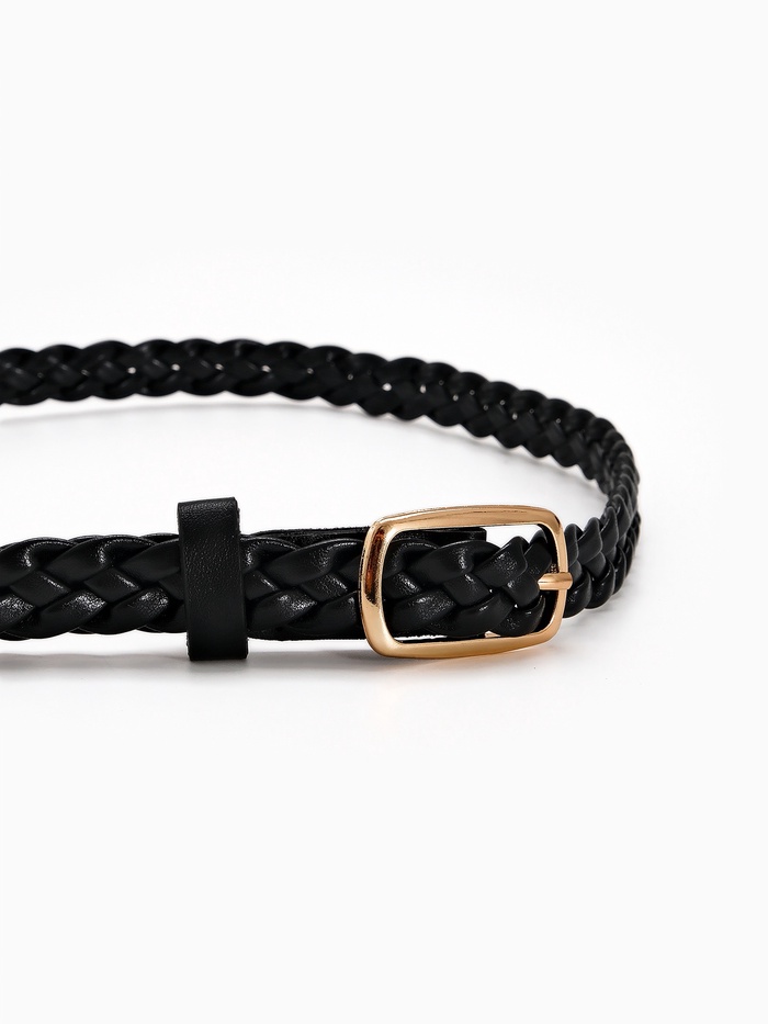 Ремень женский плетёный, 110×1.8 см, пряжка металл, золотистая, чёрный — Характеристики