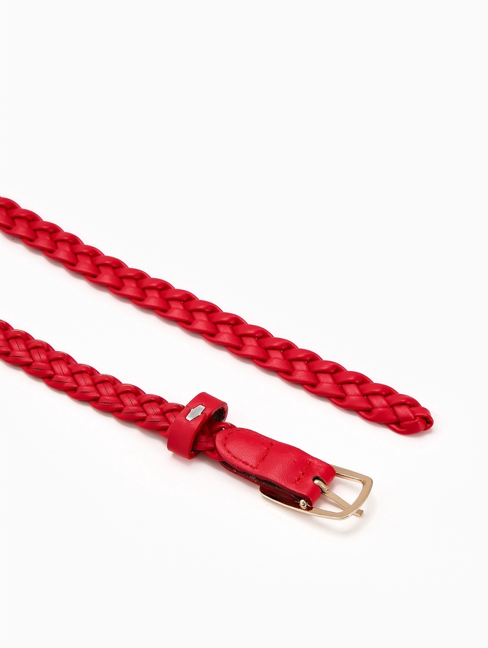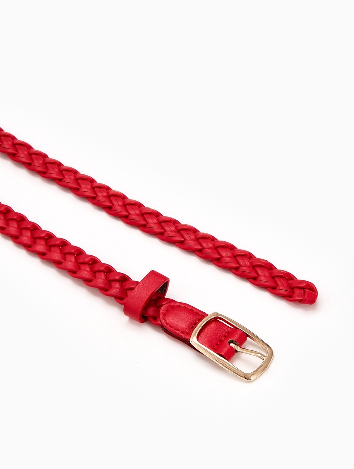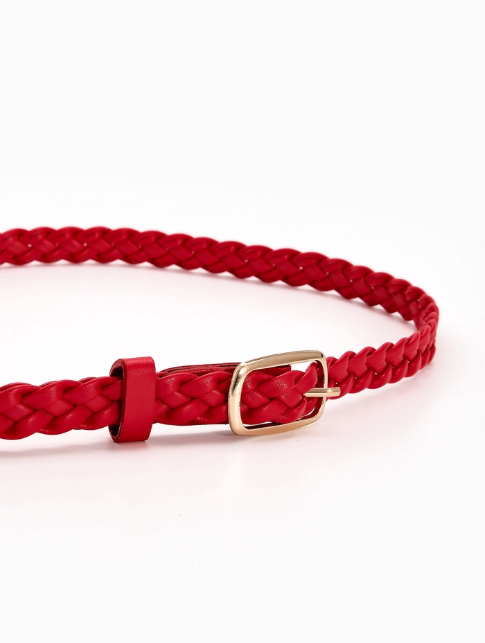 Ремень женский плетёный, 110×1.8 см, пряжка металл, золотистая, красный — Характеристики