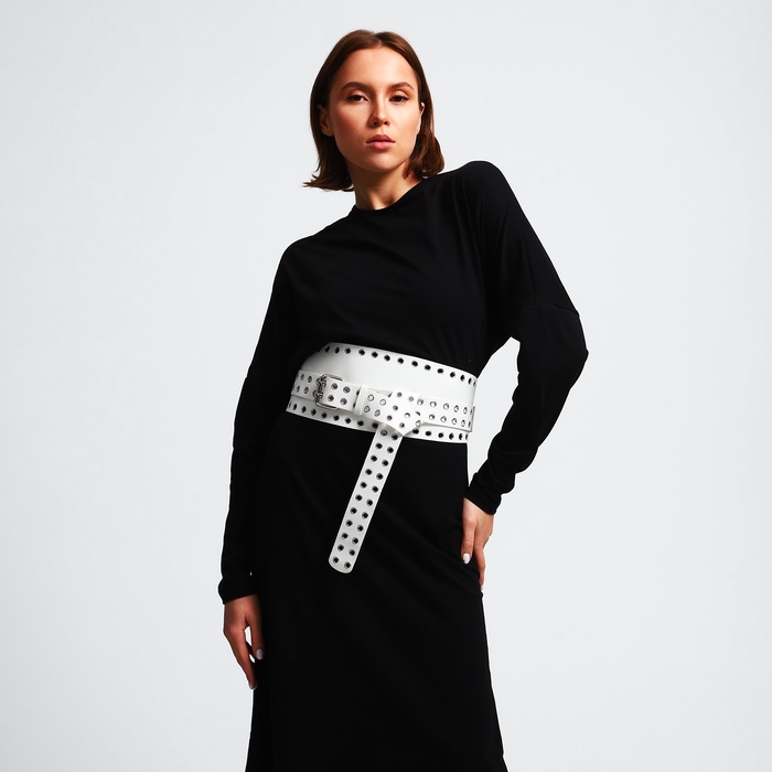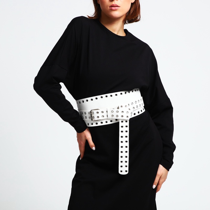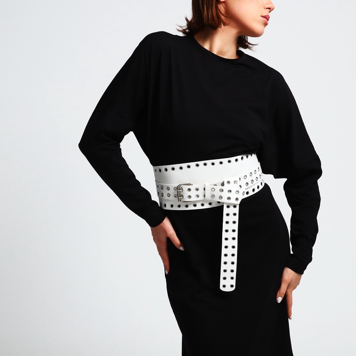 Ремень женский, пряжка металл, люверсы, цвет белый — Характеристики