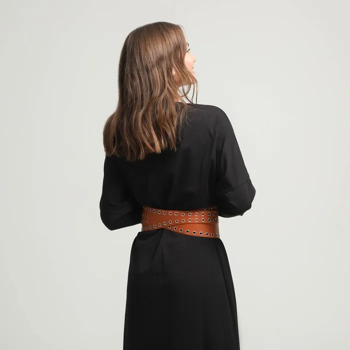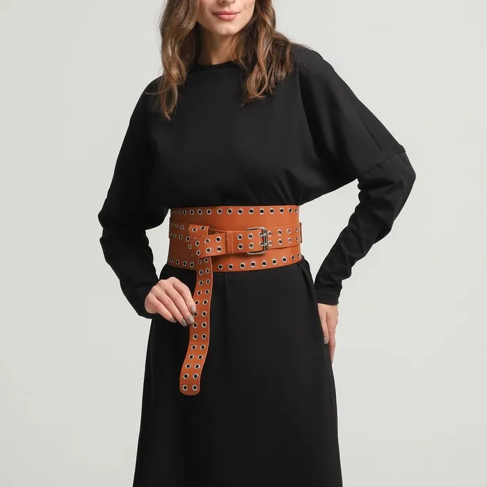 Ремень женский, пряжка металл, люверсы, цвет белый рыжий — Характеристики